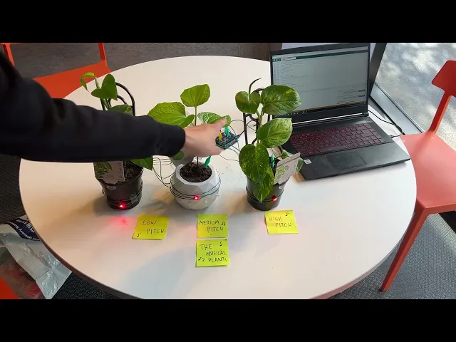 An interactive electronic interface that turns plants into playable musical instruments. Each plant is tuned to a specific pitch range, allowing users to create melodies by simply touching the leaves. The interface connects to a DAW like FL Studio, enabling users to produce real music using a variety of instruments and effects. Showcased at Melbourne Design Week 2024, Musical Plants won the Most Innovative Award at the Cybernetic Futures Showcase. Check out the video and award photo below!